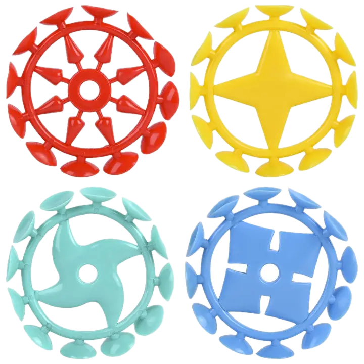 A fun suction-dart launcher toy shaped like a ninja tool! Stick it to windows, tiles, mirrors, or any smooth surface — perfect for games of skill and accuracy.